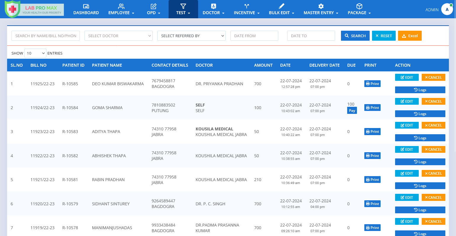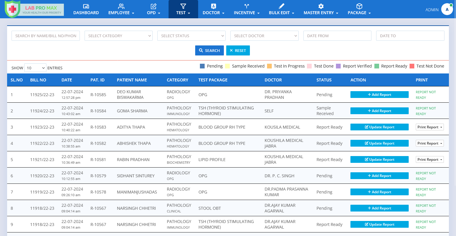 The main objective behind the development of this software is to reduce the stress load of the diagnostic centre by automating routine tasks. We needed to incorporate a larger database that could easily store patients' testing data under the surveillance of expert technicians and lab doctors which allows for generating accurate reports resulting in better patient treatment. The software also needed to be responsive so that it could be utilized across multiple devices simultaneously.